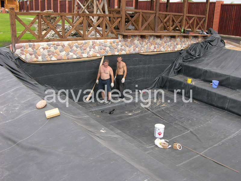 Застилка дна водоема пленкой