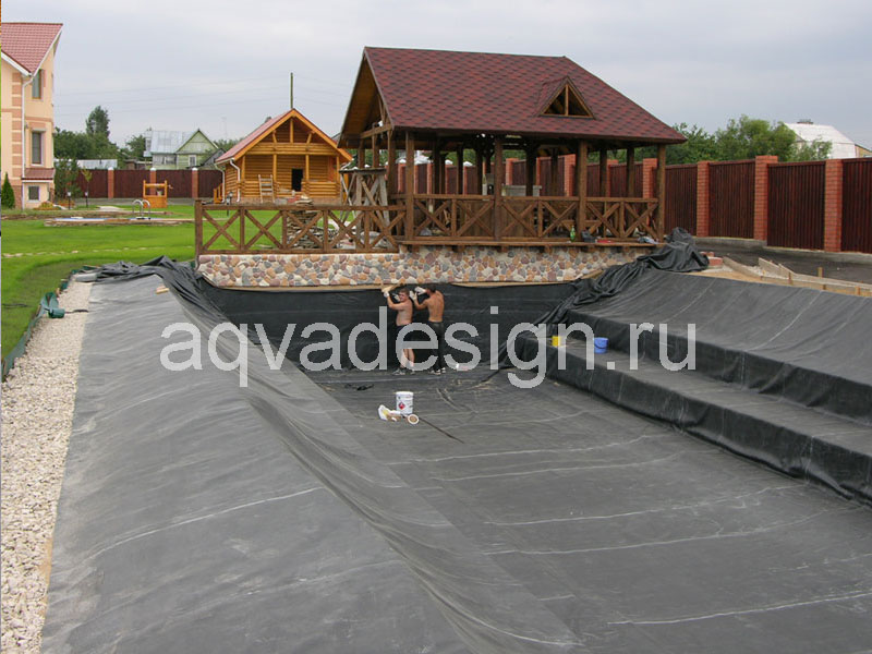 Застилка дна водоема пленкой